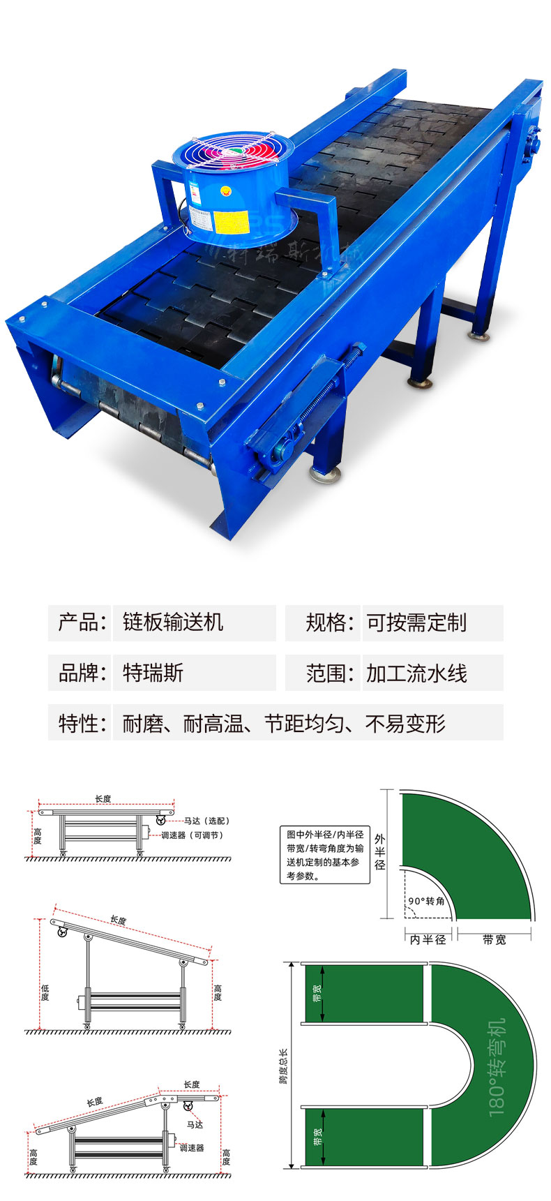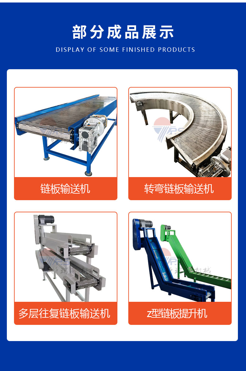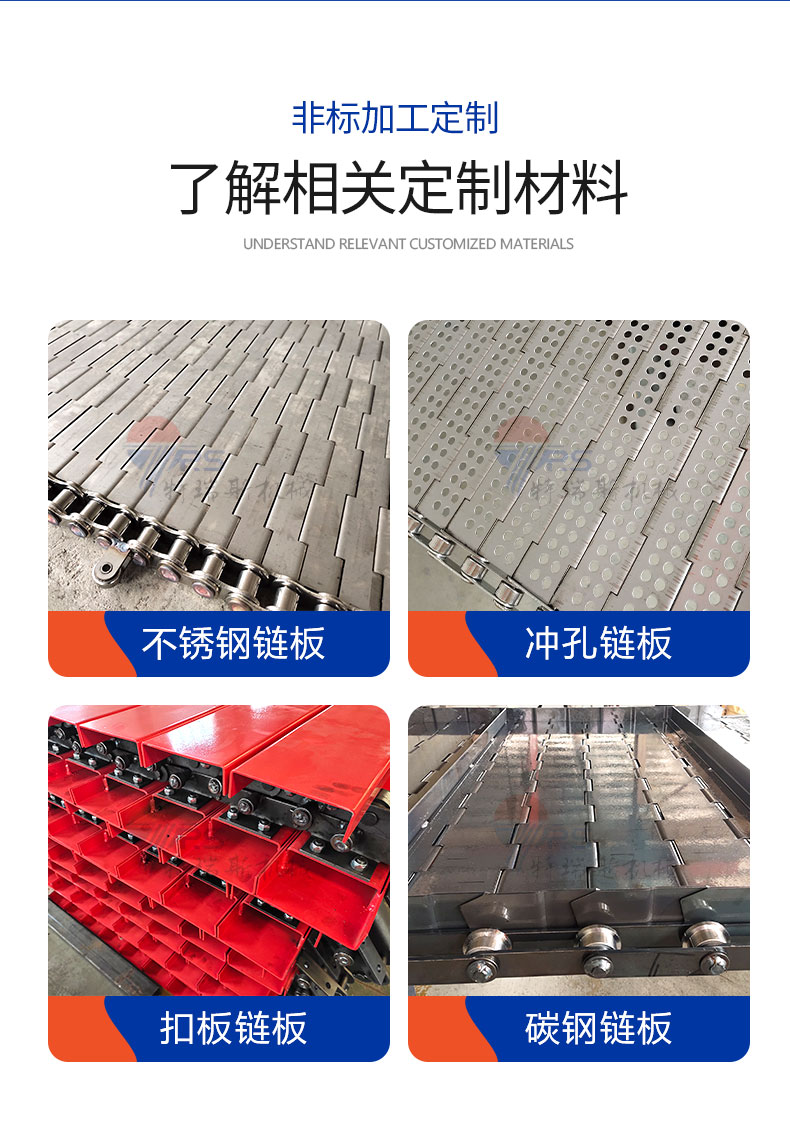 2、鏈板有不銹鋼和工程塑料等材質,規格品種繁多,可根據輸送物料和工藝要求選用,能滿足各行各業不同的需求。輸送能力大,可承載較大的載荷,如用于電動車、摩托車、發電機等行業;