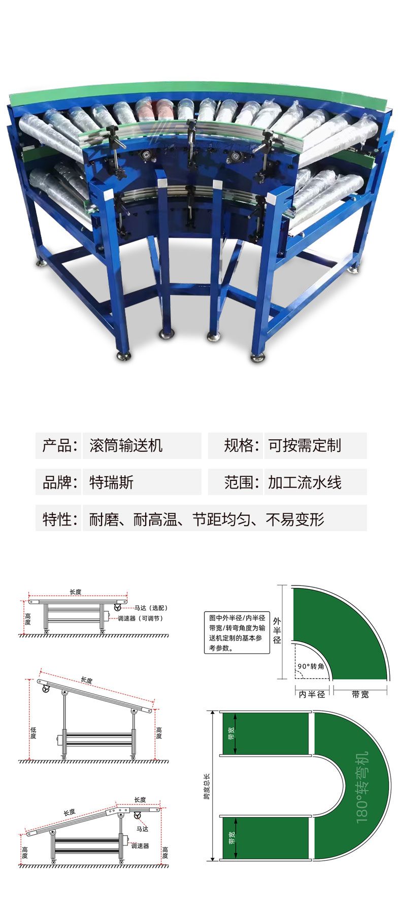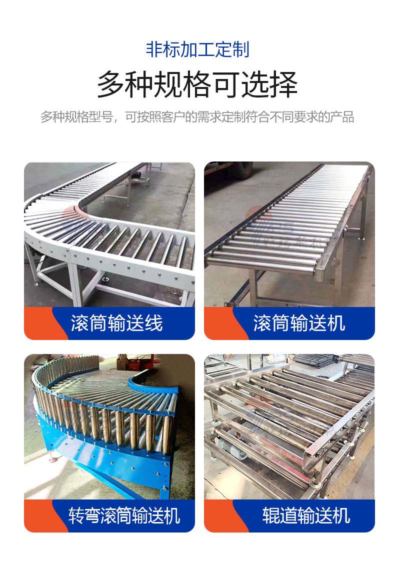 不同的使用環(huán)境需選用不同材質(zhì)的滾筒:塑膠件在低溫環(huán)境下脆性大,不適宜長(zhǎng)時(shí)間使用,所以低溫環(huán)境下需選擇全鋼制滾筒;包膠滾筒使用時(shí)會(huì)產(chǎn)生少量的粉塵,所以不可應(yīng)用于無(wú)塵環(huán)境中;聚氨酯易吸附外界顏色,故不能用于輸送帶有印刷色的包裝箱和貨物;具有腐蝕性環(huán)境時(shí)需選用不銹鋼滾筒;被輸送物體會(huì)對(duì)滾筒造成較大磨損時(shí),由于鍍鋅滾筒耐磨性不強(qiáng)、磨損后外觀不佳等原因盡量選用不銹鋼或鍍硬鉻滾筒;由于提速、爬坡等原因需要較大摩擦力時(shí)選用包膠滾筒,包膠滾筒能同時(shí)起到保護(hù)貨物地面、降低輸送噪音等作用。