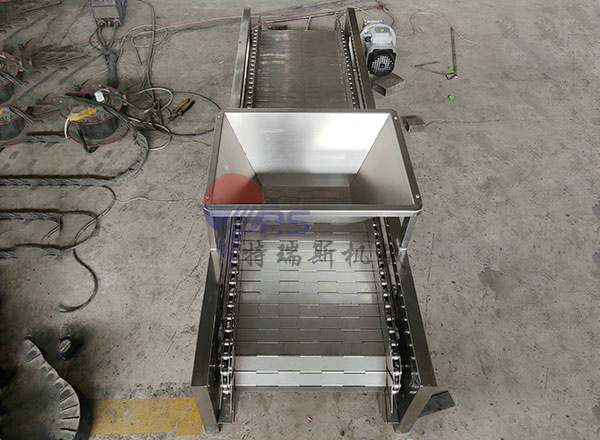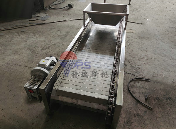 鏈板輸送機可以滿足飲料貼標、灌裝、清洗等設備的單列直線輸送的要求,同樣也可以使單列變成多列并行走緩慢,從而產生儲存量,滿足殺菌機、儲瓶臺、冷瓶機的大量供料的要求,我們可以將兩條鏈板輸送機的頭尾部做成重疊式的混合鏈,使得瓶(罐)體處于動態過度狀態,使輸送線上不滯留瓶子,可以滿足空瓶及實瓶的壓力和無壓力輸送。