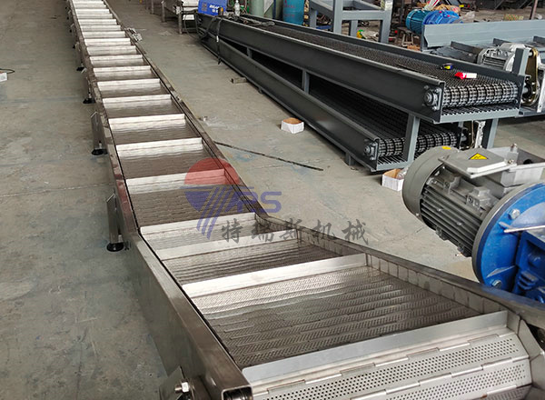 4、鏈板輸送機一般都可以直接用水沖洗或直接浸泡在水中。設備清潔方便,能滿足食品、飲料行業對衛生的要求。