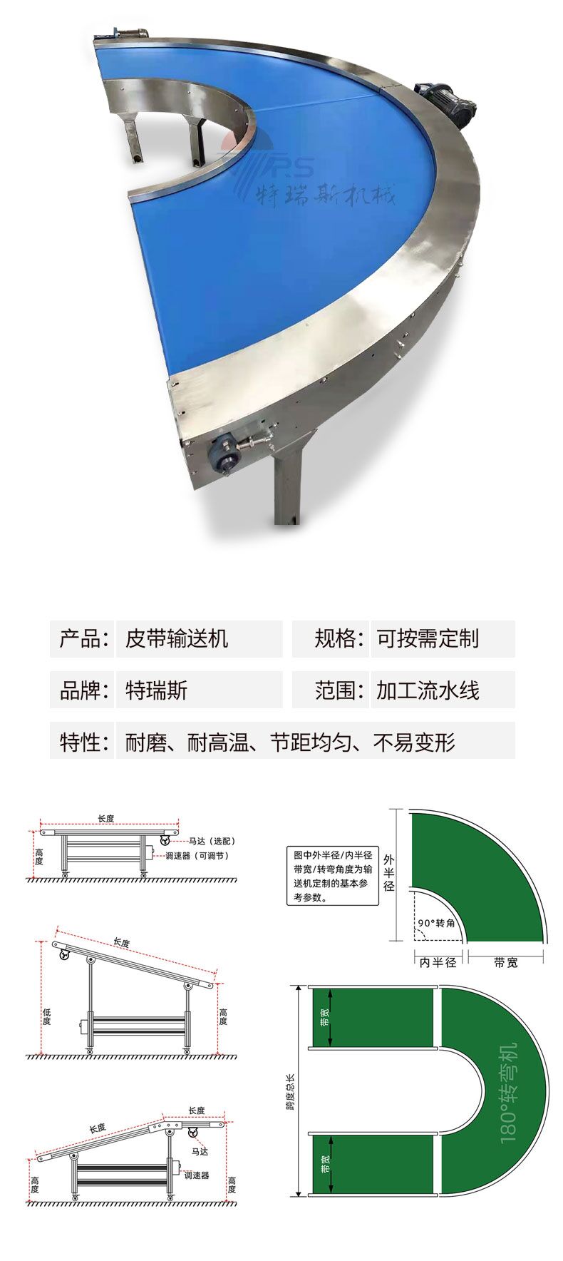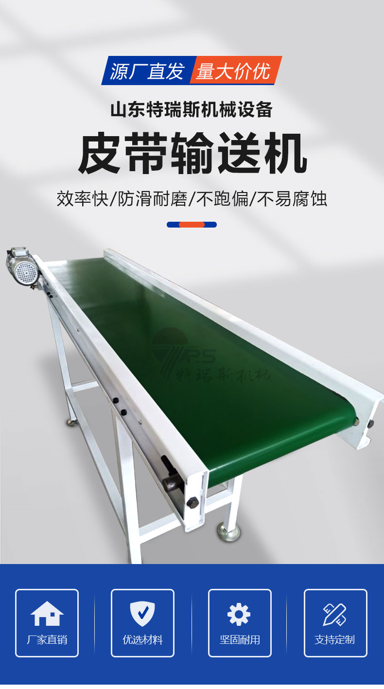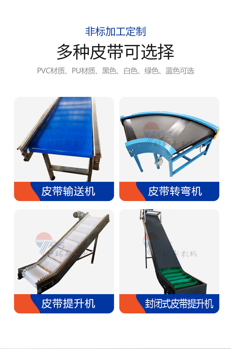 皮帶輸送機又稱pvc帶式輸送機,廣泛應用于家電、電子、電器、機械、煙草、注塑、郵電、印刷、食品等各行各業,物件的組裝、檢測、調試、包裝及運輸等。線體輸送可根據工藝要求選用:普通連續運行、節拍運行、變速運行等多種控制方式;線體因地制宜選用:直線、彎道、斜坡等線體形式 輸送設備包括:皮帶輸送機也叫帶式輸送機或膠帶輸送機等,是組成有節奏的流水作業線所不可缺少的經濟型物流輸送設備。皮帶輸送機按其輸送能力可分為重型皮帶機如礦用皮帶輸送機,輕型皮帶機如用在電子塑料,食品輕工,化工醫藥等行業。皮帶輸送機具有輸送能力強,輸送距離遠,結構簡單易于維護,能方便地實行程序化控制和自動化操作。運用輸送帶的連續或間歇運動來輸送100KG以下的物品或粉狀、顆狀物品,其運行高速、平穩,噪音低,并可以上下坡傳送。